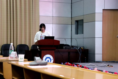 最后,土木公司退役士兵向金晶同学发表讲话。向金晶为同学们讲述了她在军营的心路历程:由第一次的新奇震惊到之后的沉稳冷静、由最初的盲目自信变成后来的自然成熟。向金晶还说到了军队生活的细节,包括训练、内务等等。作为一个女兵,她出色完成了各方面的任务。