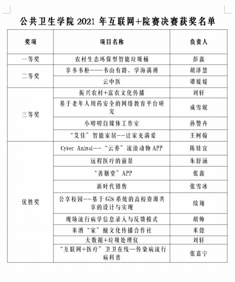 最后,比赛共评选出一等奖1名,二等奖2名,三等奖4名,优胜奖9名,其中彭鑫团队的 “农村生态环保型智能垃圾桶“项目荣获决赛一等奖。