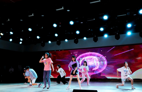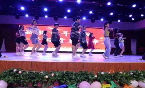 随着动感的音乐和闪耀的灯光,舞蹈队炫酷的舞姿瞬间点燃了晚会的氛围,同学们晃动闪光的应援棒为舞蹈《ROCK》打call。