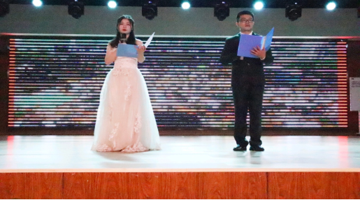短暂的中场休息中,有趣的游戏“摇摇乐”让场下一片欢声笑语,洋溢着欢腾的气氛。在这样的气氛中,晚会到达了高潮,我们开始展望未来。