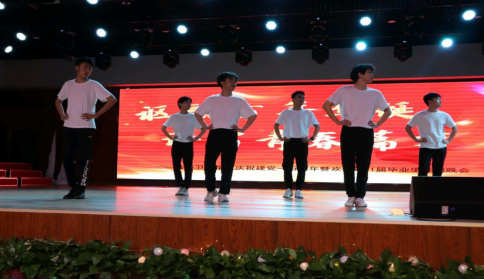 第四个节目是毕业班17卫检01班的舞蹈《阳光男孩,阳光女孩》。清脆的歌声在空中回荡,欢快的舞蹈庆贺毕业的喜悦。