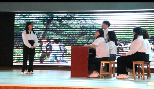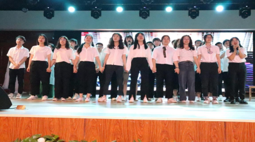 接着是自管部和学习部的大合唱《纪念》,曲至最后,表演者们向观众席送出了一个个洁白的的纸飞机,表达了对学长学姐们的祝愿。