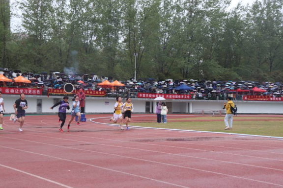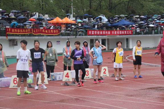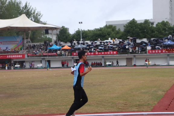 10月15日下午的北校田径场阴雨连绵,战鼓喧天。天气已经渐凉,但是运动员们依旧激情似火,观众们的助威呐喊声依旧响亮,竞赛正如火如荼地进行!