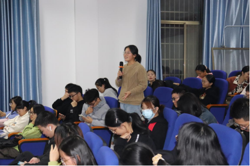 紧接着进行分享经验的是王琪,她告诉我们要首先了解保研与考研规则,并强调我们不仅要重视专业成绩与英语水平的提高还要重视科研能力的培养,希望我们能够积极参加科研活动,培养科研方面能力。