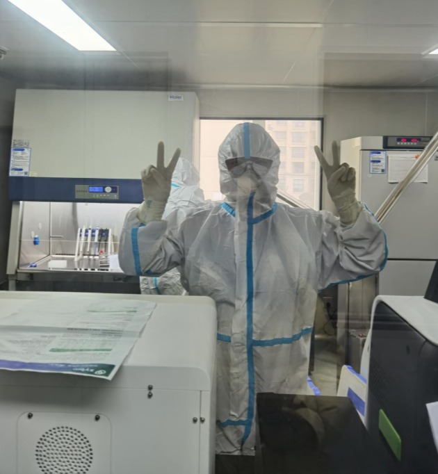 图为孙淼于邵阳市新邵县展开核酸检测工作 图为苏婉钰志愿服务集体照