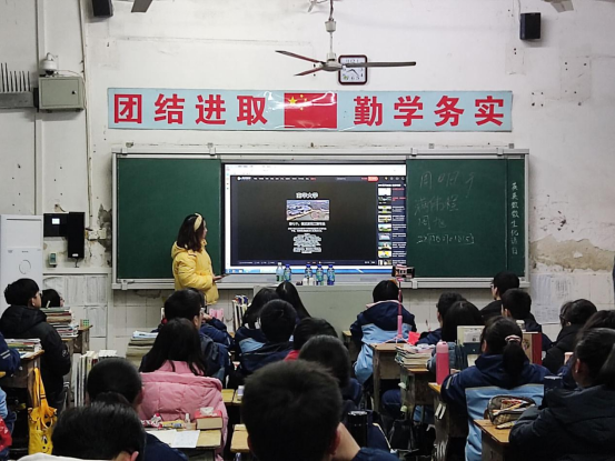 图为谭翔为成章高级中学高三员工进行线上宣传