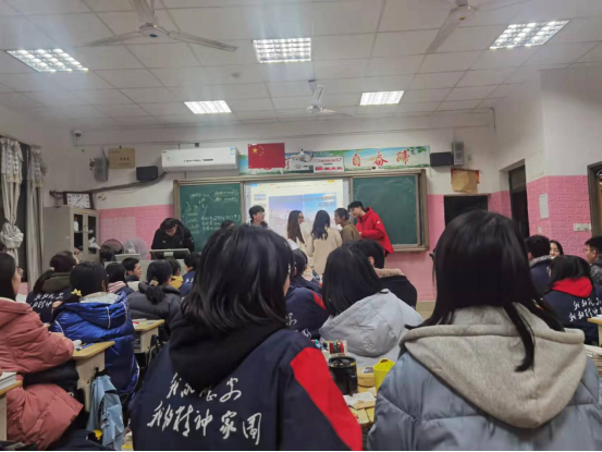 图为张子钰在娄底一中宣传 图为盛雯婕在永州一中宣传