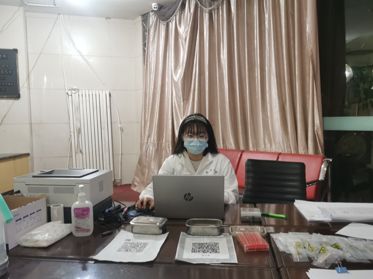 因为疫情形式严峻,实习点的老师让全体实习生居家待命。但是,刘致远作为一名公卫人,在居家待命的这段时间里她主动协助社区工作人员,完成所在社区每日的核酸采集工作。每天早上七点钟她都准时到达社区核酸采集点,开始进行每日的居民信息核对、核酸采样、信息登记等工作,每次上午的工作结束都已经过了正午12点。虽然全程穿着防护服很热,也不能喝水和上厕所,但她想到能为家乡的疫情防控做出一点贡献,就感到无比骄傲和自豪。她相信疫情会很快过去,我们的生活也会恢复正常!