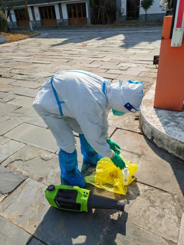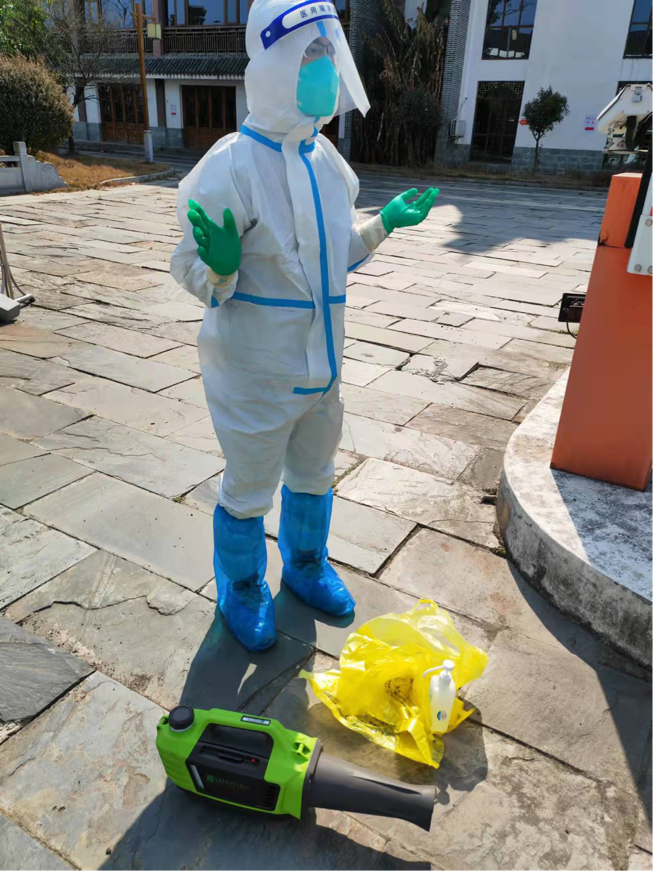 雷盛旺随老师穿过常德的市中心,到达隔离酒店。原本繁华的地段,如今只有寥寥几人带着口罩行色匆匆。穿上防护服,阳光照射在他的身上,唯一的感受就是热和闷。在老师的带领下,他来到了消杀点。消毒工作并不算困难,重要的是细致,他需要对每个角落进行彻底的消毒,并把一切感染者可能接触到的物品进行打包处理。看似轻松的消杀工作耗费了整个上午,脱下防护服,汗水已将他的衣物浸湿。