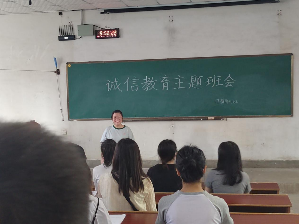 图为本17预防01班召开诚信班会