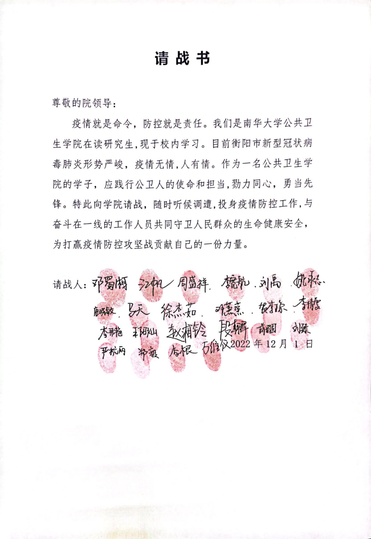 很快,vsport收到22名研究生志愿请战支援市疾控的请战书。12月3日早上8点半,公司组织召开“研究生志愿者参与衡阳市疫情防控出征仪式”,公司党委书记龙鼎新、经理杨飞、副经理杨慧仙、教学办主任于军晖以及首批14名研究生志愿者参加会议。龙鼎新与杨飞对这次志愿活动的重要意义与工作纪律作了强调。