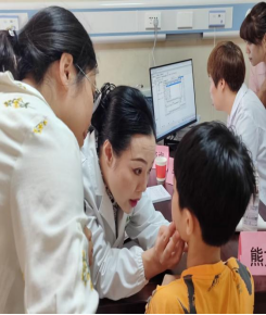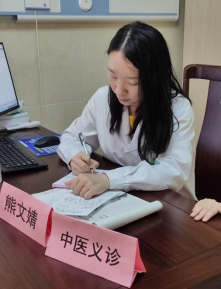 黄艳主任和熊文婧医师为小员工提供中医义诊服务