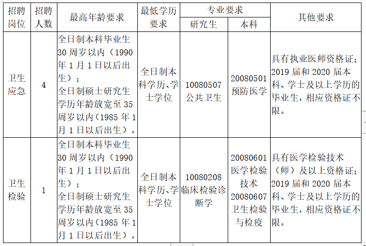 为保障我县疫情防控工作科学有效开展,根据人力资源和社会保障部办公厅《关于切实做好新型冠状病毒感染的肺炎疫情防控期间事业单位人事管理工作的有关问题的通知》(人社厅发〔2020〕8号)、《湖南省事业单位公开招聘人员办法》(湘人社发[2019]1号)文件精神,经县委、县政府批准,决定面向社会采取直接考核的方式,招聘公共卫生技术专业人员5名。