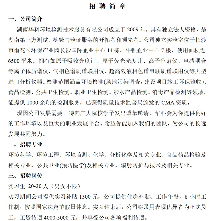 湖南华科环境检测校园招聘简章-2020.3月.doc