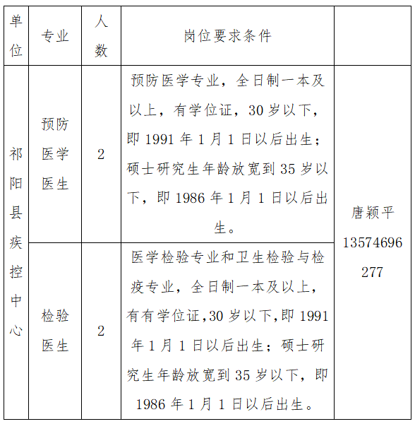 2021年祁阳县疾控中心面向vsport胜利因您更精彩现场招聘需求如下