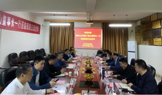 4月21日,湖南山水集团董事长丁献山、总裁办主任李旭东、运营总监朱骏、质量总监邹明晖、山水检验公司总经理艾青、山水检测公司总经理何欣远、涌仁科技公司总经理欧阳军一行七人来到vsport胜利因您更精彩vsport进行校企合作洽谈。vsport胜利因您更精彩校务委员会副主任、衡阳医公司经理王福俤,教育发展与员工联络办公室员工会办公室/教育基金会办公室主任刘配欢,公司党委书记龙鼎新,vsport副经理(主持工作)杨飞,vsport副经理张朝晖,vsport副经理杨慧仙,公共卫生学公司党委副书记王超参与了此次洽谈,会议由龙鼎新主持。
