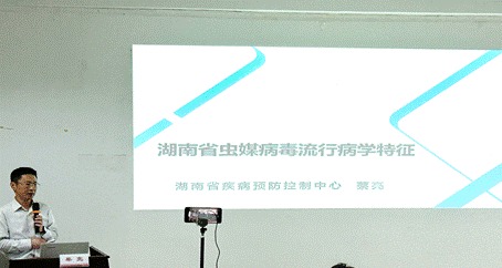 首先,蔡亮副主任给同学们介绍了虫媒病毒的概念,从传播媒介和传播环节简要让大家了解了虫媒病毒。然后,从湖南省蠓、蚊中虫媒病毒的分离和进化入手,介绍了蚊和蠓的采集方法和病毒提取。同时,与师生们分享了乙脑、登革热、输入性基肯孔雅热等传染病暴发的流行病学特征。蔡亮副主任的报告深入浅出,内容丰富,大家均表示收获很多。