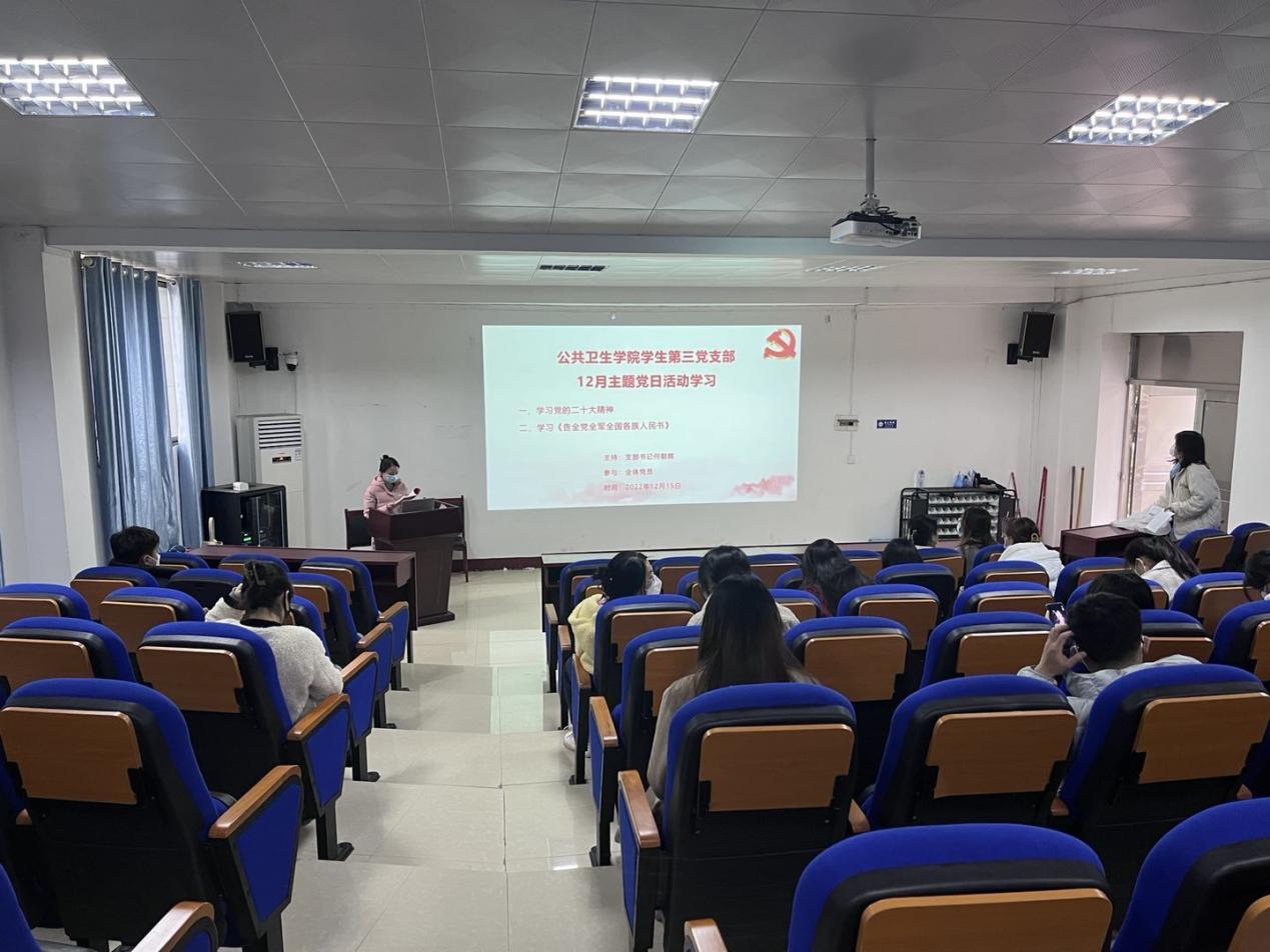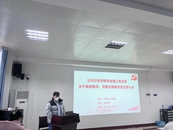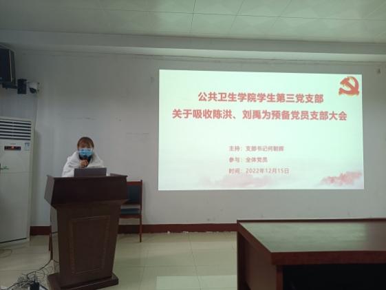 2022年12月15日上午11:00,vsport员工第三党支部于三教101召开预备党员转正支部大会、吸收预备党员支部大会暨十二月主题党日活动学习会议顺利进行,何朝辉主持会议,全体党员参加会议。