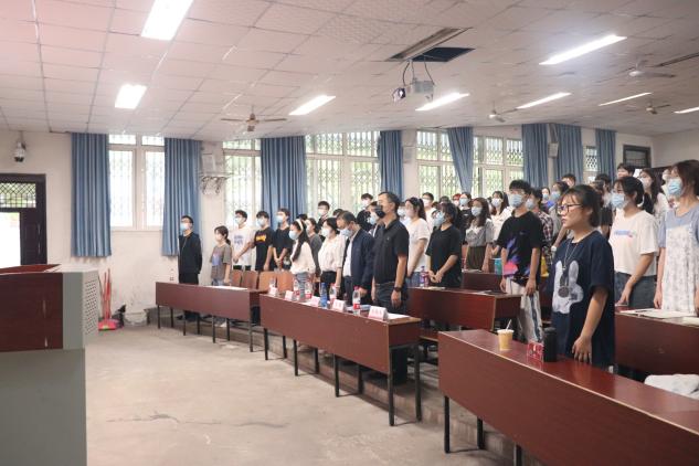 会议伊始,全体师生起立,奏唱国歌。随后王超宣布班级建制情况、课程安排及考核办法。
