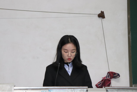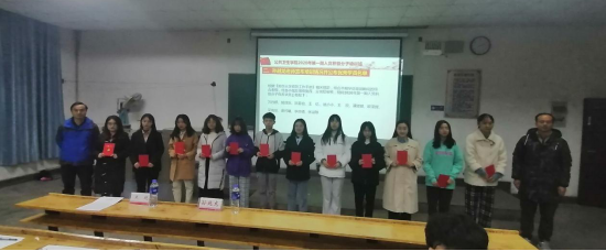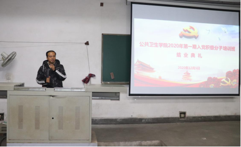 接下来,优秀学员代表谢何曦同学上台发言。她首先对党组织和老师为积极分子培训所做出的努力表达了感谢,之后她详谈了她的学习心得体会以及如何真正入党:努力学习,认真实践,时刻反省。她也代表入党积极分子作出了为达到党员标准而努力奋斗的承诺。