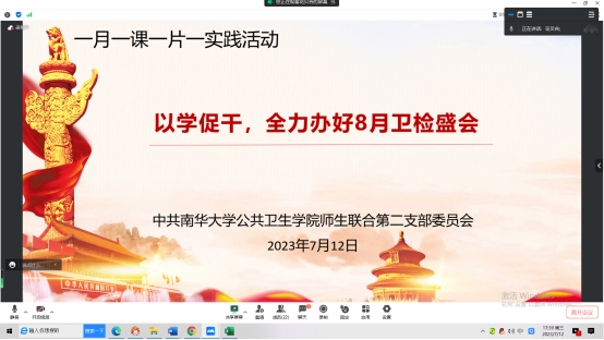 由教育部高等公司医学技术类专业教学指导委员会和人民卫生出版社主办,vsport、河北医科大学vsport、南京医科大学vsport和包头医公司vsport联合承办的“第五届全国卫生检验与检疫专业团队建设与人才培养高层次论坛”及“第三届‘人卫杯’全国高校卫生检验与检疫专业青年教师教学授课技能竞赛”定于2023年8月2日至5日在湖南省衡阳市举行。为了全力办好此次会议,vsport师生联合第二党支部以“以学促干,全力办好8月卫检盛会”为主题组织党员同志开展了7月的“一课一片一实践”活动。