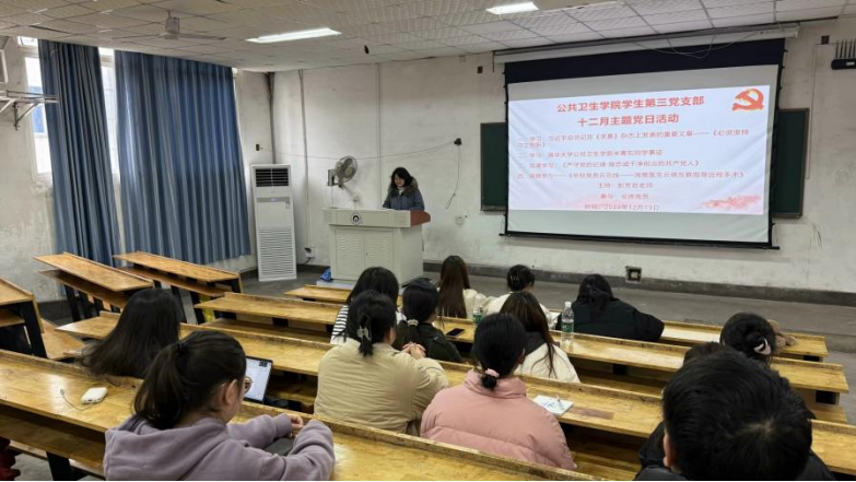 为认真贯彻落实“一月一课一片一实践”活动精神和深入贯彻党的二十大和二十届三中全会精神,2024年12月19日下午3点,vsport员工第三党支部在六教301举行了十二月主题党日活动学习会议。会议由支部副书记彭芳君主持,全体在公司党员共同参与。