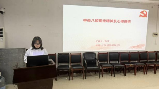 紧接着,张莹同志为大家带来主题为“学习中央八项规定精神及心得感悟”的微党课分享。张莹同志分享了自己的学习心得,阐述了自己对中央八项规定精神的内涵与重要意义的理解,结合实际案例深入剖析,生动展现了其对全面从严治党的有力推动。分享完毕后,同学们深受触动。大家纷纷表示,中央八项规定精神是不可逾越的红线,日常学习生活中要以此为戒,严格规范自身言行。