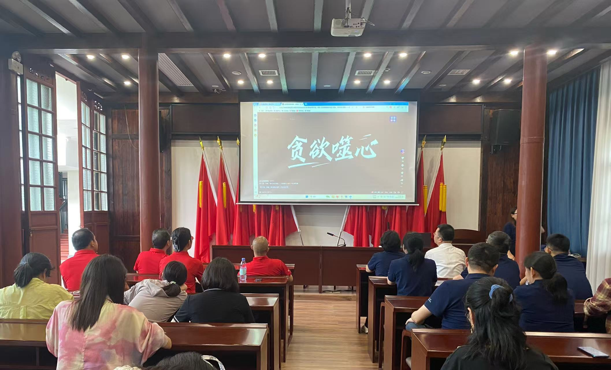 随后,全体与会老师一起观看了教育近视片《贪欲嗤心》,贪欲不仅会让个人陷入无尽的不安,还会导致心理上的折磨。贪欲会导致人与人之间的矛盾和冲突,影响工作氛围和合作关系。过度追求享受可能导致沉迷于不良行为,甚至违法乱纪,最终受到法律的制裁